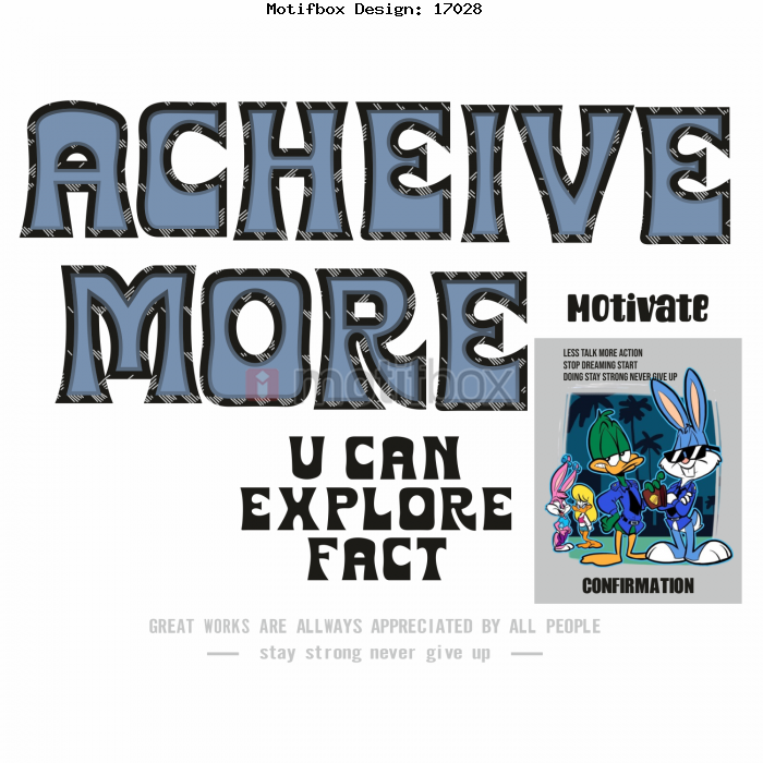 T-SHIRT DESIGN FOR BOYS VECTR CDR TYPOGRAPHY PRINTING CLOTHING ACHEIVE MORE U CAN EXPLORE FACT MOTIVATE GREAT WORKS ARE ALLWAYS APPRECIATED BY ALL PEOPLE STAY STRONG NEVER GIVE UP