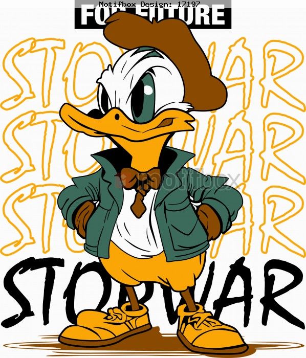 T-SHIRT DESIGN VECTOR CDR TYPOGRAPHY CREATION CREATIVE LOGO STOPWAR FOR FUTURE CARTOON VECTOR DUCK VECTOR BOYS T-SHIRT DESIGN .