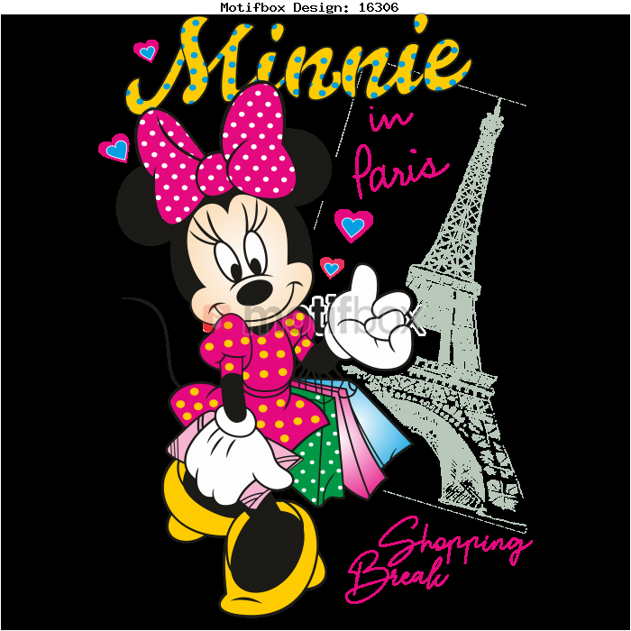 T-SHIRT DESIGN FOR KIDS VECTOR CDR TYPOGRAPHY CLOTHING CREATIONS CREATIVE MINNIE IN PARIS SHOPPING BREAK HEARTS CARTOON CUTE SMILE BAGS TEXTURE T SHIRT DESIGN