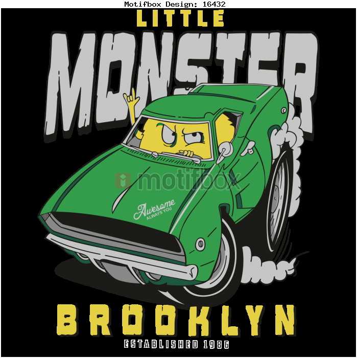 T-SHIRT DESIGN FOR KIDS VECTOR CDR TYPOGRAPHY CLOTHING CREATIONS CREATIVE MONSTER CAR BROOKLYN ART ESTABLISHED 1986 AWESOME ALWAYS YOU LITTLE T SHIRT DESIGN COOL CAR FASHION