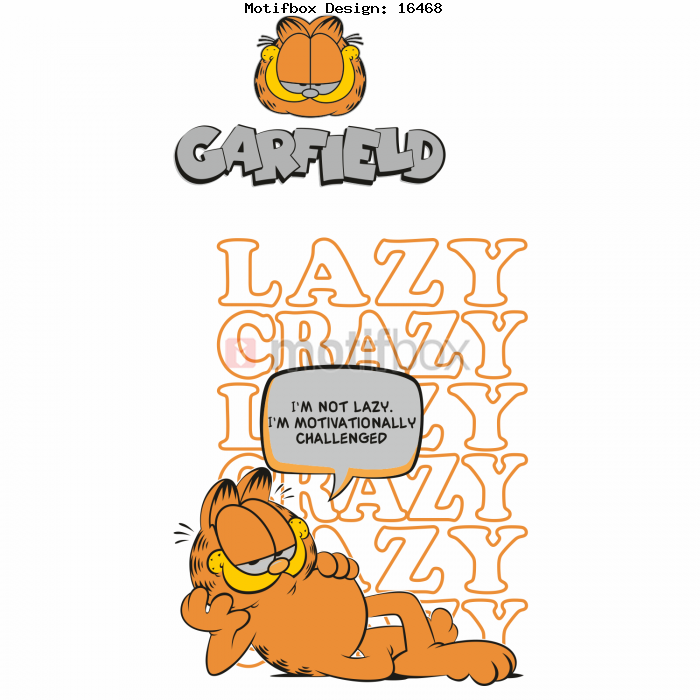 T-SHIRT DESIGN FOR KIDS VECTOR CDR TYPOGRAPHY CLOTHING CREATIONS CREATIVE GARFILD LAZY CRAZY COOL I AM NOT LAZY I AM MOTIVATIONALLY CHALLENGED CARTOON FASHION HAND DRAW T SHIRT DESIGN
