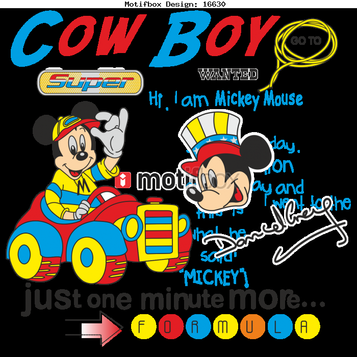 T-SHIRT DESIGN VECTOR CDR TYPOGRAPHY PRINTING CLOTHING LINING BOYS DESIGN DIFFERENT NEW LOOK COOL DESIGNS TRENDING KIDS FASHION COW BOYS WANTED GO TO SUPER HI I AM MICKEY MOUSE JUST ONE MINIUTE MORE FORMULA.