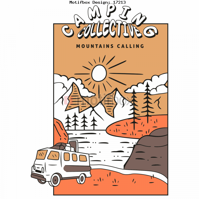 T-SHIRT DESIGN FOR BOYS VECTOR CDR TYPOGRAPHY PRINTING CLOTHING CAMPING COLLECTIVE SUN MOUNTAIN CALLING BUS TREE SEA CLOUD LEAF ART FASHION COOL T SHIRT DESIGN